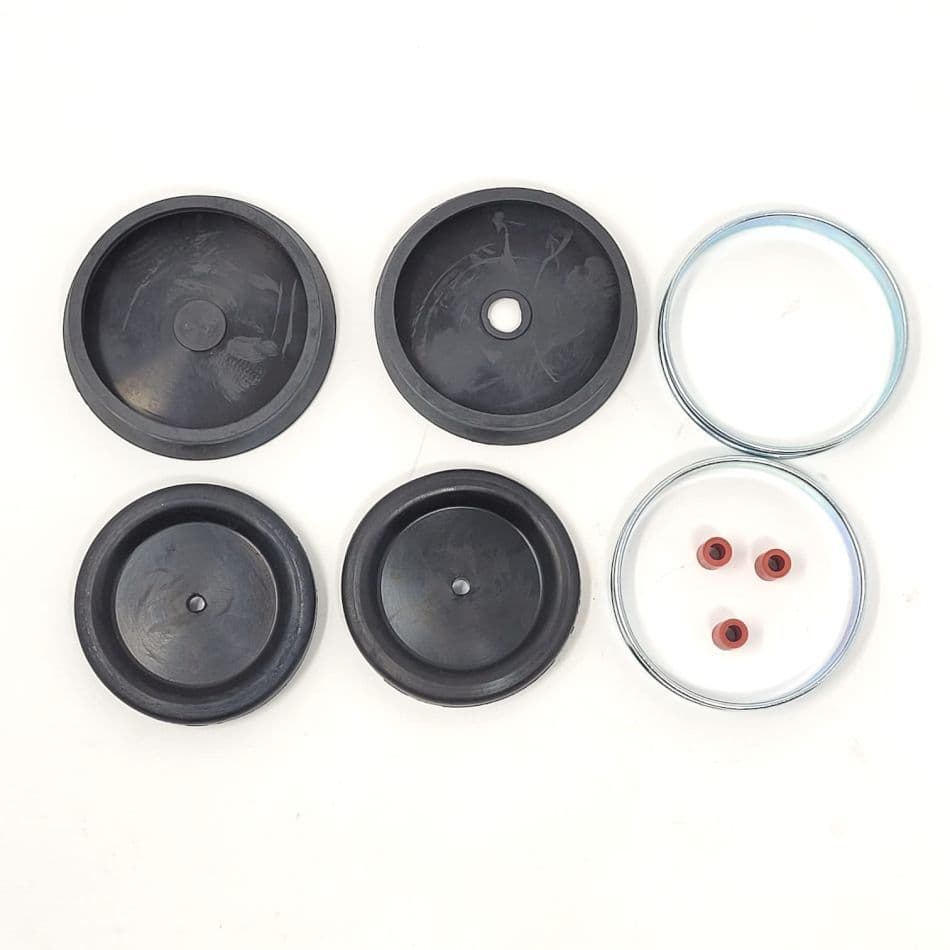 This kit contains all the parts needed to re-seal a leaking height corrector - 2 x diaphragms, 2 x rings to hold diaphragms, 2 x dust covers and 3 pipe seals.